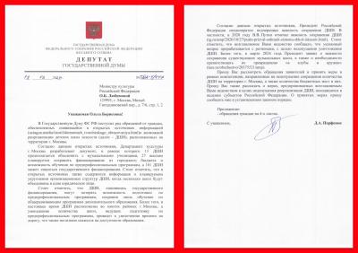 В связи с очевидной попыткой сокращения бесплатного образования в сфере культуры столицы по обращениям граждан, депутат Госдумы, секретарь МГК КПРФ Д.А. Парфенов направил два депутатских запроса: