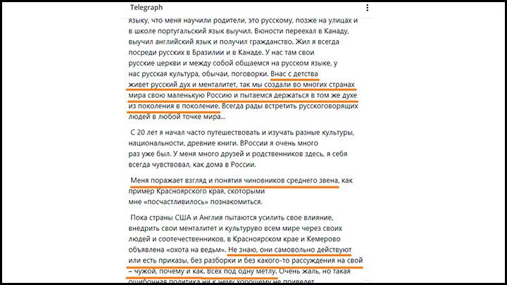 Каждое решение о депортации русского из России — позор для тех, кто его принимает, с учётом того, что лозунги защиты Русского мира и "своих не бросаем" заявлены в качестве приоритетов современной государственной политики. Высылка за незначительные нарушения представителей государствообразующего народа, русских, которые из-за различных бюрократических препон годами не могут оформить гражданство, ведётся на фоне массовой замещающей миграции и раздачи паспортов выходцам из Средней Азии и Закавказья. Русские возвращаются на историческую Родину не только из-за тяги к своим, но и из-за русофобии в бывших республиках СССР. Чаще всего в государствах, куда их высылают из России, у них уже нет жилья, родственников и средств к существованию. Они хотят быть среди своих, в России, жить, работать, рожать детей и служить в армии.