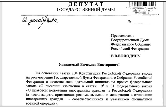 Депутаты Госдумы от КПРФ Михаил Матвеев и Сергей Обухов внесли на рассмотрение законопроект: Чтобы наших соотечественников перестали гнать из России, предлагается ввести прямой запрет на высылку из страны не только русских, но и украинцев, и белорусов, а также участников СВО и членов их семей.
