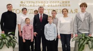 Ребята посетили Государственную Думу России, где им рассказали о работе парламента и показали выставку о его истории. Здесь у юных амурчан состоялась беседа с земляком и депутатом Госдумы Дмитрием Новиковым. Гости рассказали о себе, своих планах и впечатлениях от посещения Москвы. Общение завершилось вручением новогодних подарков.