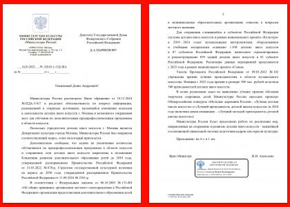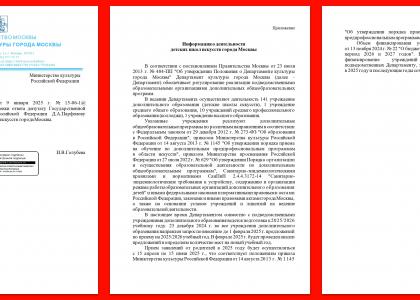 Минкультуры декларирует, что разделяет нашу обеспокоенность, касающуюся перспектив изменения подходов в деятельности детских школ искусств г. Москвы и возможного сокращения мест для обучения по дополнительным предпрофессиональным программам в области искусств.