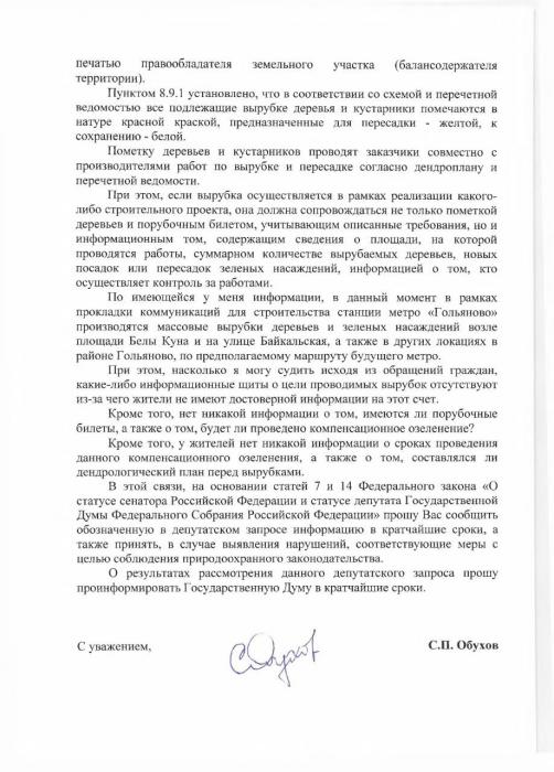 С целью проверки законности проводимых в районе вырубок отправил депутатский запрос в департамент природопользования и охраны окружающей среды города Москвы.