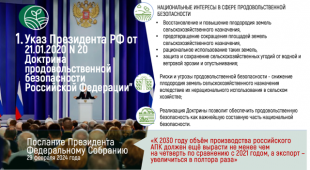 Уважаемые товарищи! Наша задача — проявить решимость и отстоять правду. В итоге, ещё раз хочу пожелать нам всем добиться тех целей, которые поставил перед нами Главнокомандующий в это военное время. Мы должны увеличить производство основных сельскохозяйственных культур на 25% и валовой сбор в целом, а также в условиях санкционного давления увеличить экспорт продовольствия на 50%.