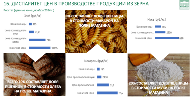 Не намного лучше ситуация и в зерновом диспаритете. Зерно продаём по 12, в лучшем случае 13 рублей, а мука уже стоит в два раза дороже до 23 рублей , а торговые наценки снова такие большие, что цена за хлеб уже превышает 100 рублей. Это серьёзная проблема. Мы внесли соответствующий законопроект №77579-8 об установлении предельного размера торговой надбавки (наценки) к отпускным ценам на отдельные виды социально значимых продовольственных товаров первой необходимости, но пока не удаётся его пробить. Однако, надеюсь, что мы всё-таки добьёмся решения этого вопроса, в дополнение к уже принятым двум законам, которые направлены на решение проблемы с реализацией с/х товаров, а именно закон от 08.08.2024г. № 297-ФЗ, который направлен на поддержку и развитие сбыта фермерской продукции, произведенной на животноводческих фермах или других объектах, принадлежащих в первую очередь, микро- и малым сельскохозяйственным товаропроизводителям и закон от 08.08.2024 г. № 301-ФЗ, который устанавливает сроки оплаты с/х товаров не позднее чем через 4 рабочих дня для товаров, срок годности которых установлен 5 и менее дней, и не позднее чем 8 рабочих дней для товаров с установленным сроком годности от 6 до 9 дней включительно.