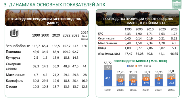 Именно поэтому, уважаемые товарищи, мы ещё и ещё раз говорим о необходимости оперативного решения назревших вопросов. Президент не просто поставил задачу увеличения продовольственного производства, но и чётко обозначил ключевые направления развития — в том числе торговлю и экспорт. Причём цели здесь крайне амбициозные: увеличить нашу экспортную составляющую на 50%. Это сложная, но стратегически важная задача, и её решение определит не только будущее агропромышленного комплекса, но и экономическую устойчивость страны в целом.