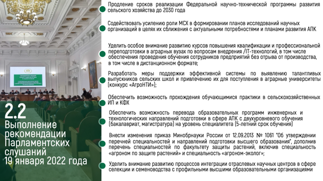 Уважаемые коллеги, заканчивая свое выступление, хочу представить основные законодательные изменения, которые были приняты Государственной Думой за время, прошедшее после парламентских слушаний в 2022 году. Так, например, уже сегодня есть возможность осуществлять во взаимодействии с сельскохозяйственными товаропроизводителями «целевое обучение» в сфере сельского хозяйства и инженерии за счет государственного бюджета. Приняты федеральные законы, направленные на развитие сельского туризма и с целью поддержки иных видов деятельности, не являющихся сельскохозяйственной, но традиционно осуществляемых на сельских территориях и необходимых для привлечения интереса молодых людей к сельской жизни, а также укрепления основного вида деятельности – сельскохозяйственного производства.