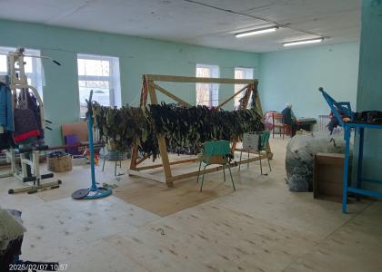 Именно здесь волонтёры и активисты, в здании не так давно открытого спортивного зала, активно помогают нашим ребятам на передовой: плетут маскировочные сети и собирают гуманитарную помощь.
