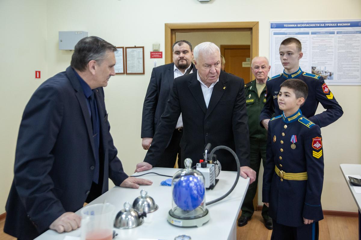 В учебном корпусе почётный гость побывал в учебных классах и музее Тюменского ПКУ. В Универсальном зале состоялась встреча с воспитанниками училища, в рамках которой Виктор Иванович Соболев рассказал интересные факты из своей биографии и ответил на вопросы кадет.