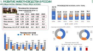 Если говорить о животноводстве, то по итогам 2024 года продукция отрасли произведена на 101% к уровню прошлого года, а производство молока достигло 34 млн тонн. Важный момент: закупки молока за первые 9 месяцев 2024 года увеличились на 15%. Ожидаем, что по итогам года тенденция сохранится.