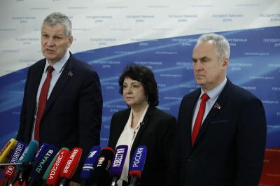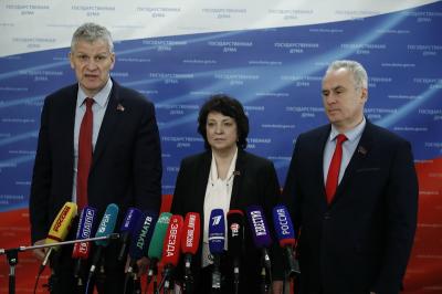 13 февраля, предваряя пленарное заседание Госдумы, перед журналистами выступили депутаты-коммунисты А.В. Куринный, А.Е. Глазкова и Е.И. Бессонов.
