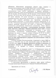 заявления от Правительства Российской Федерации о том, что его распоряжение №2761-р, легализующее муку из насекомых, не распространяется на продукты питания для людей;