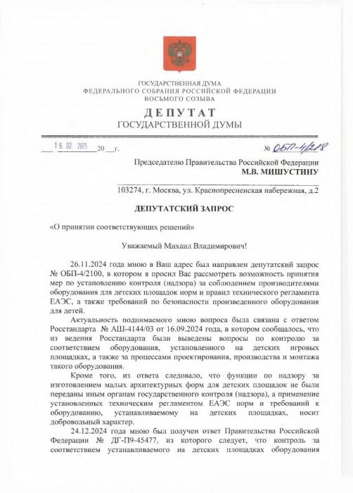 Это говорит о явной необходимости пересмотра существующей системы контроля. Координатор Народной приемной, депутат Госдумы Сергей Обухов направил в Правительство Российской Федерации запрос с инициативой по: