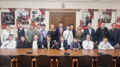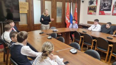 В зале заседаний фракции КПРФ школьников встретила депутат, заместитель Председателя Комитета Государственной Думы по защите семьи, вопросам отцовства, материнства и детства Мария Дробот. Она подчеркнула значимость изучения истории, напомнила о предстоящем 80-летии Победы, поговорила о действующей школьной программе и о том, какие дисциплины формируют личность и гражданскую позицию человека. В ответ ученики поделились историями о своих родных, участвовавших в Великой Отечественной войне.