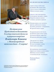 Председатель Комитета Государственной Думы по аграрным вопросам Владимир Кашин поздравляет с Международным женским днем – 8 марта!