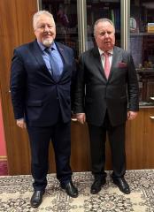 14 марта 2025 года Президент Международного Фонда духовного единства народов (МФДЕН) профессор В.А.Алексеев встретился в офисе Фонда в Москве с Заместителем Председателя Комитета по развитию гражданского общества, вопросам общественных и религиозных объединений Государственной Думы Федерального Собрания Российской Федерации С.П.Обуховым.