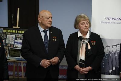 «В открытии это выставки принимает участие летчик-космонавт Светлана Савицкая, единственная в мире женщина – дважды Герой Советского Союза. Это первая женщина, вышедшая в открытый Космос. Вместе с нами дважды Герой Советского Союза, летчик-космонавт Владимир Джанибеков, который пять раз был в Космосе. Он блестяще знает все проблемы, связанные с Космосом. В открытии выставки принимают участие летчики-космонавты А.И. Лазуткин, Ф.Н. Юрчихин, А.И. Борисенко, Р.Ю. Романенко, конструкторы Е.А. Альбац, Б.Г. Дамдинов», - представил космонавтов и конструкторов лидер КПРФ.