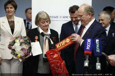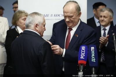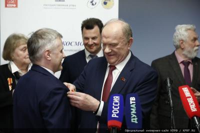 18 марта в Госдуме открылась выставка «Первые в Космосе. История Космонавтики в почтовой миниатюре». На открытии выступил Председатель ЦК КПРФ, Руководитель фракции КПРФ в Госдуме Г.А. Зюганов. Во время церемонии лидер КПРФ наградил группу космонавтов и конструкторов памятной медалью ЦК КПРФ «80 лет Победы».