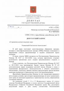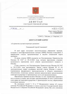 Обухов также направил обращение Собянину, где интересуется причинами принятия такого постановления и предложил его пересмотреть.
