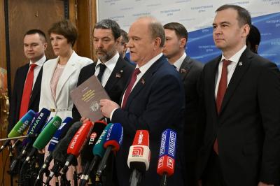 26 марта, предваряя пленарное заседание Госдумы, перед журналистами выступил Председатель ЦК КПРФ, Руководитель фракции КПРФ в Госдуме Г.А. Зюганов.