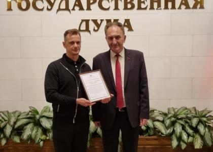 В конце встречи депутат поблагодарил Алексея Пеганова за его деятельность, за личный вклад в патриотическое воспитание подрастающего поколения, а также вклад в решение вопросов, касающихся социально незащищенных семей, инвалидов и за поддержку детей военнослужащих, участвующих в СВО, вручив ему Благодарственное письмо.