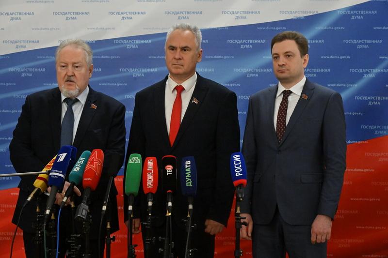3 апреля, предваряя пленарное заседание Госдумы, перед журналистами выступили депутаты КПРФ С.П. Обухов, Г.П. Камнев, Е.И. Бессонов.