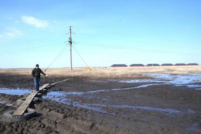 По весне поселок тонет. Конечно, это не такие потопы, как прошлогодние в Орске и Усть-Ишиме, но очень неприятные подтопления. Огороды залиты, вода в подпольях, дома ведет и корежит, дороги превращаются в болото. Люди, как могут, сами откачивают воду на поля. Но она не менее активно прибывает. Андрею Анатольевичу показали новый микрорайон – шесть четырехквартирных домов, построенных по программе обеспечения жильем детей-сирот. Дома неплохие, даже газифицированы. Но подхода к ним просто нет. Вокруг – болото. Люди заселились и как-то живут. Депутата Госдумы даже пригласили в гости в один из домов на улице 1 Мая. Показали, что вода стоит не просто в подполье, она уже на уровне пола, еще несколько сантиметров (или один сильный дождь), и лужи будут в комнатах.