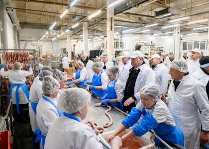 В ходе визита В.И. Кашин осмотрел производство мясокомбината, ознакомился с технологиями процессов переработки мясной и молочной продукции, а также обсудил вопросы развития агропромышленного комплекса и поддержки сельхозпроизводителей в регионах.