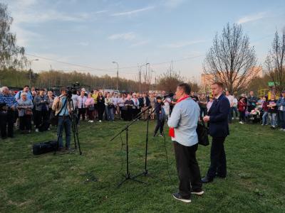 Депутат Госдумы от КПРФ, секретарь МГК КПРФ Д.А. Парфенов вместе с экс-кандидатами от КПРФ в Мосгордуму Леонидом Воробьевым, Дмитрием Павловым и Николаем Сергеевым провели большую встречу на Лебедянской улице, где растёт народное возмущение против высотной застройки прямо возле Бирюлевского дендропарка.