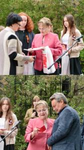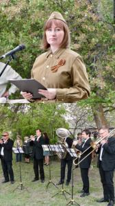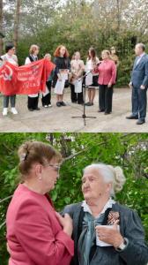 Возложили цветы к памятнику участникам Великой Отечественной войны, труженикам тыла и участникам СВО поселка Сергиевский, почтили память минутой молчания. Я выступила с поздравлением, вручила памятные награды победителям конкурса «Салют, Победа!» и копию Знамени Победы, которое было водружено над Рейхстагом в 1945 году. Также вручила памятный подарок учительнице — Володиной Нине Васильевне — мудрой, энергичной женщине, которая застала День Победы будучи ребенком. Ее речь сегодня тронула до глубины души всех присутствующих.