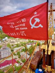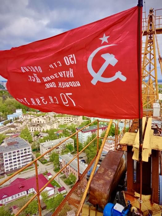 Нижегородские крановщики при поддержке НРО КПРФ провели масштабную акцию, посвященную 80-летию Победы. 9 мая на строительных башенных кранах появились копии Знамени Победы, которые украсят их до конца мая 2025 года.