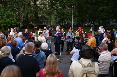 В понедельник, 26 мая, прошла встреча депутата Госдумы Сергея Обухова с несколькими сотнями жителей района Котловка (ЮЗАО), обеспокоенными планами властей по постройке платной высокоскоростной магистрали в районе.