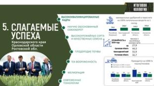Вот ниже можно посмотреть слагаемые успеха, вот тут и Краснодар, и Орёл, и, и Ростов, все слагаемые известны. Это и кадры высококвалифицированные и научно обоснованный севооборот, тут и семена, и удобрения, и техническая вооружённость. Вот тогда все получаются, все видно, все понятно.