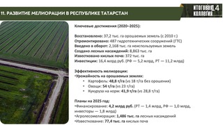 Важная тема в достижении поставленных задач это мелиорация, для понимания масштаба — в Соединённых Штатах Америки мелиорируемых площадей — 70 миллионов гектаров, в Китае — 74 миллиона орошаемых земель.