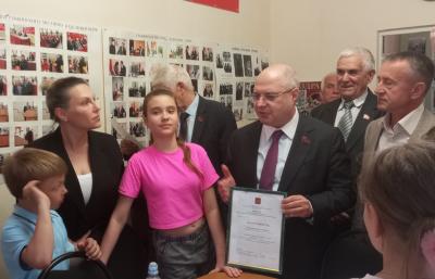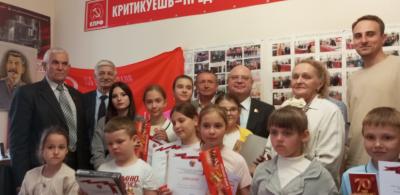 Все дети, участники мастер-класса, были отмечены дипломами и подарками, которые вручали депутат Госдумы Сергей Гаврилов и первый секретарь Белгородского обкома КПРФ Валерий Шевляков.