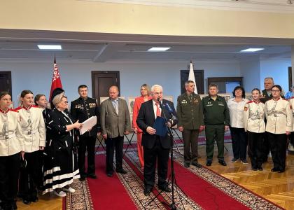 В открытии выставки приняли участие представители Минобороны РФ, Россотрудничества, Ассоциации кадетских поисковых отрядов Беларуси, объединения «Память и примирение» и кадеты Полоцкого, Витебского, Гомельского кадетских училищ.