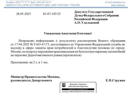 В апреле 2025 года в адрес депутата Госдумы Анастасии Удальцовой поступили многочисленные жалобы на отсутствие парковочных мест для водителей-инвалидов на парковке у Дорогомиловского рынка — а ведь согласно закону, таких мест должно быть не менее 10% от общего количества.
