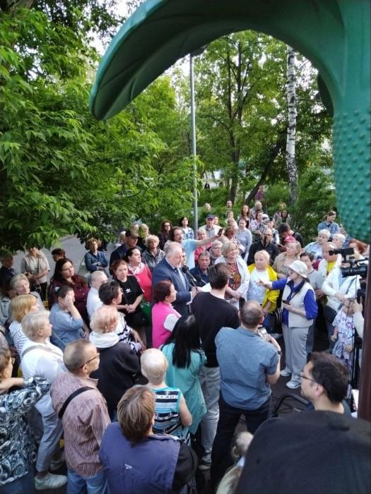 Никто из муниципальный депутатов, кроме Лосиноостровского муниципального депутата от КПРФ Натальи Кутлуниной, на встречу не пришел. Директор парка Яуза, депутат МГД от «Единой России» А.С.Сафронов, первоначально объявивший, что придет на место, где запланирована встреча депутата С.П.Обухова с избирателями на встречу с возмущенными жителями не явился. Он лишь параллельно в парке перед советниками управы давал заверения, что границы парка остаются без изменений, все занятия в рамках проекта «Московское долголетие» скоро будут возобновлены, кафе на территории парка продолжит работу, старые аттракционы будут обновлены. Но опять никаких документальных подтверждений планов сохранения парка не предъявил. А тем временем демонтаж и разруха все явственнее просматриваются на подведомственной ему территории...