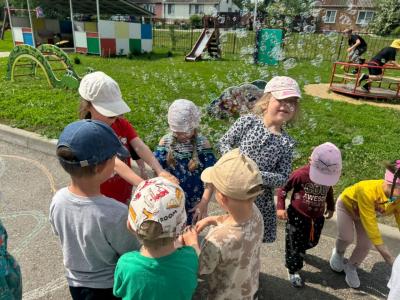В день детства члены Ровеньского местного отделения ВЖС «Надежда России» (председатель Вера Титовская) провели вместе с детьми веселые игры и соревнования. Праздничное мероприятие завершил запуск мыльных пузырей, которые ярко сверкали, улетая в небо.