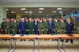 На встрече с кадетами присутствовали: Дзержинский В. М. — помощник депутата от КПРФ Государственной Думы РФ Егорова В. И.; участники СВО — Кулябин В. В., Пинте С. В.; ветераны боевых действий — Гринь А. В., Ужов В. В.; преподаватель Академии ФСБ Баринов Б. П.; представители Министерства Обороны Зайцев А. В., Павлюкович Ю. А.