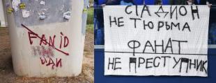 Я вот, когда собирался на сегодняшнее заседание, то подобрал некоторые фотографии общественных пространств, которые показывают, что до сих пор протест против Fan ID сохраняется. Вот на фото лозунги: «Fan ID – уйди» и так далее. Они украшают и стены, и заборы, и стадионы.