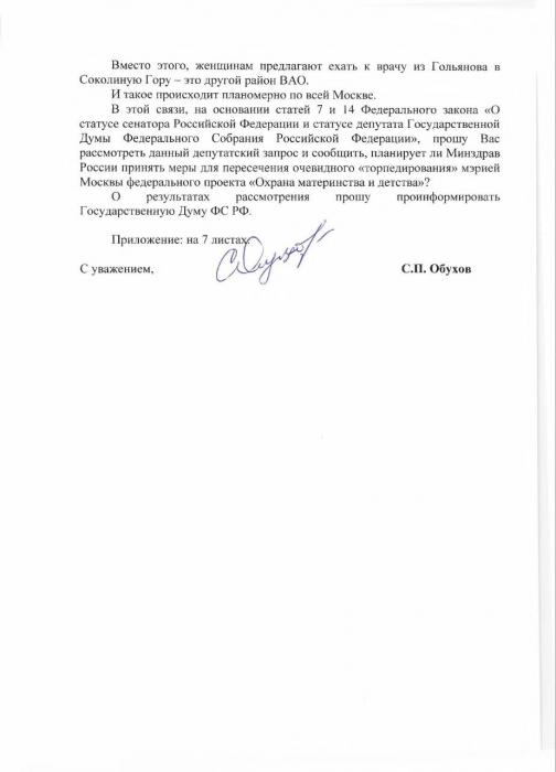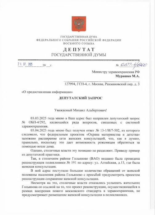 Обратил внимание главы Минздрава на очевидное "торпедирование" мэром федерального проекта по защите и охране женского здоровья, направив ему соответствующий депутатский запрос. Посмотрим его реакцию.