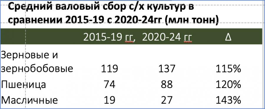 Подводя промежуточные итоги пятилетней работы аграрного комитета можно увидеть, что индекс производства зернобобовых культур составил 115%, а по масличным — 143% к уровню предыдущей пятилетки - это высокие показатели, особенно на фоне других отраслей. Однако комитет и Минсельхоз не собирается останавливаться на достигнутом. Сегодня поставленная задача Президентом выход на 170–180 миллионов тонн зернобобовых в год.