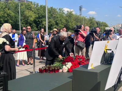 Секретарь ЦК КПРФ, Первый заместитель Председателя Центрального Совета СКП–КПСС, Первый заместитель Председателя Комитета Государственной Думы по делам СНГ, евразийской интеграции и связям с соотечественниками К.К. Тайсаев 28 июля принял участие в акции памяти детей, погибших от агрессии киевского режима. Возложив цветы на площади Донецкой Народной Республики в Москве, К.К. Тайсаев выступил перед собравшимися.