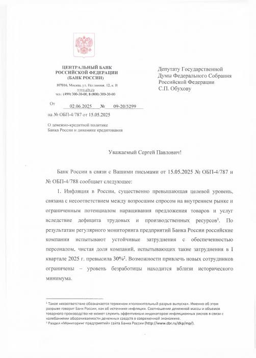 Депутатские запросы Обухова выявили ключевой, системный конфликт между задачами по экологическому и промышленному развитию страны и политикой Центробанка, ориентированной исключительно на макроэкономическое сдерживание. В результате же - в России до сих пор отсутствуют условия для экологической модернизации, несмотря на громкие заявления чиновников. Центробанк работает не на страну, а на догмы «монетарной школы». Правительство же, признавая провал в осуществлении госпрограмм, ограничивается лишь «штабами» да «картами» - вместо реального финансирования того же строительства заводов, например.