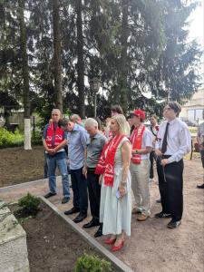 Мероприятие, проводимое в рамках работы постоянно действующей депутатской вертикали КПРФ, началось с митинга и последующего возложения цветов коммунистами и трудовым коллективом предприятия к памятнику гениальному государственному деятелю, основателю Советского государства Владимиру Ильичу Ленину, расположенному на территории вышеупомянутой производственной площадки.