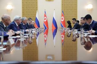 14 августа в Пхеньяне состоялась встреча делегации Государственной Думы с Председателем Президиума Верховного Народного Собрания КНДР Цой Рён Хэ.
