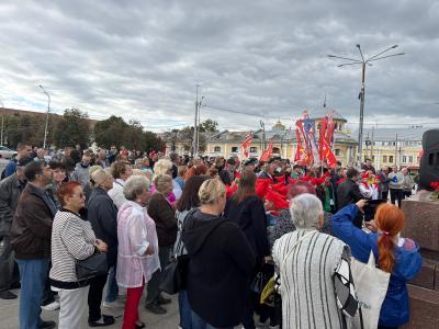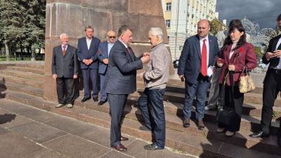 Заместитель Председателя ЦК КПРФ, Председатель Комитета Государственной Думы по аграрным вопросам, академик РАН Владимир Иванович Кашин продолжил свой визит в Рязань посещением главной площади города, носящей имя Владимира Ильича Ленина.