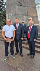 Вместе с делегацией, в которую вошли депутат Госдумы Владимир Павлович Исаков, депутат Мособлдумы Владимир Николаевич Барсуков, руководитель фракции КПРФ в облдуме Денис Сергеевич Сидоров и депутаты-коммунисты гордумы Эвелина Николаевна Волкова и Лилия Матвеевна Кривцова, главный редактор газеты «Приокская правда» Дмитрий Владимирович Иваничкин и помощник депутата Государственной Думы Евгений Николаевич Морозов.