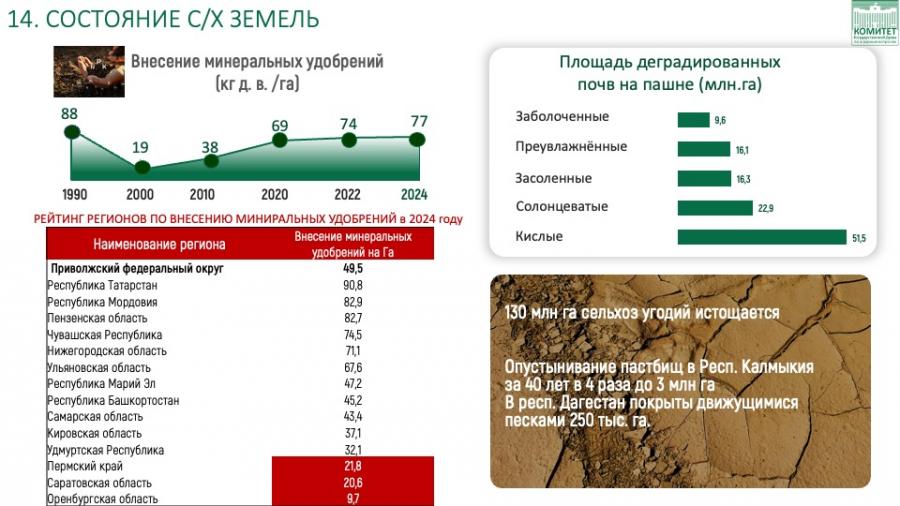 Возьмём пример Оренбургской области. Здесь в 1990-е годы из севооборота выбыло более 1 миллиона гектаров пахотных земель — и они до сих пор не возвращены в оборот. Разве это не красноречивый показатель того, насколько серьёзна проблема?