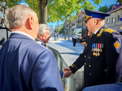 Кроме того, Владимир Дзержинский встретился со студентами Дальневосточного федерального университета, а также провел переговоры с Андреем Петровичем Броварецем, послом по особым поручениям и руководителем Представительства МИД России во Владивостоке. Темами встреч стали вопросы, связанные с выбором достойного учебного заведения для присвоения имени Дзержинского. Достигнуты предварительные договоренности, окончательное решение о выборе школы будет принято в ближайшее время.